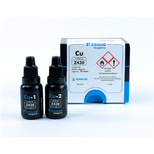 Set of reagents for determining the content of copper in fresh and marine water in the range of: