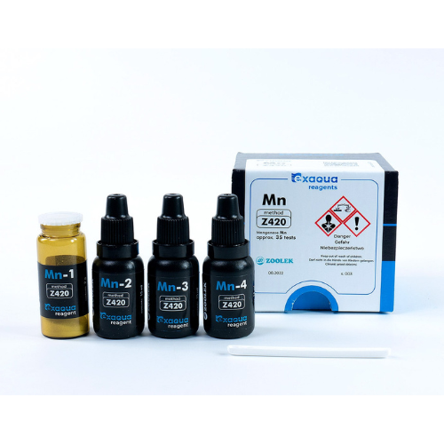 Set of reagents for determining the content of manganese in fresh water in the range of 0.05 to 5 mg/l with a resolution of 0.01 mg/l.