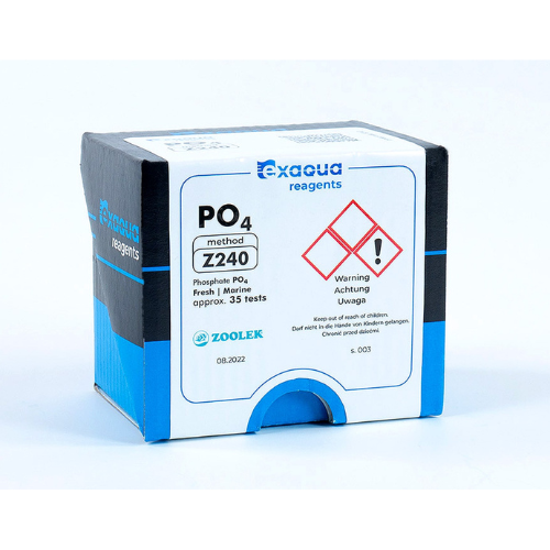 Set of reagents for determining the content of phosphate in fresh and marine water in the range of 0.05 to 10 mg/l with a resolution of 0.01 mg/l.